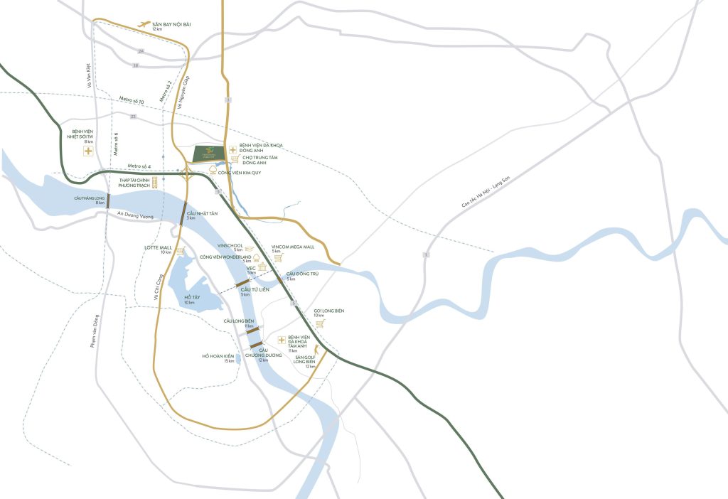 Situated along Vo Nguyen Giap Boulevard within the Nhat Tan – Noi Bai urban corridor, the project possesses outstanding connectivity advantages: approximately 8 minutes to access Hanoi city center, around 15 minutes to Noi Bai International Airport, along with convenient connections via Nhat Tan, Dong Tru, and Tu Lien bridges.