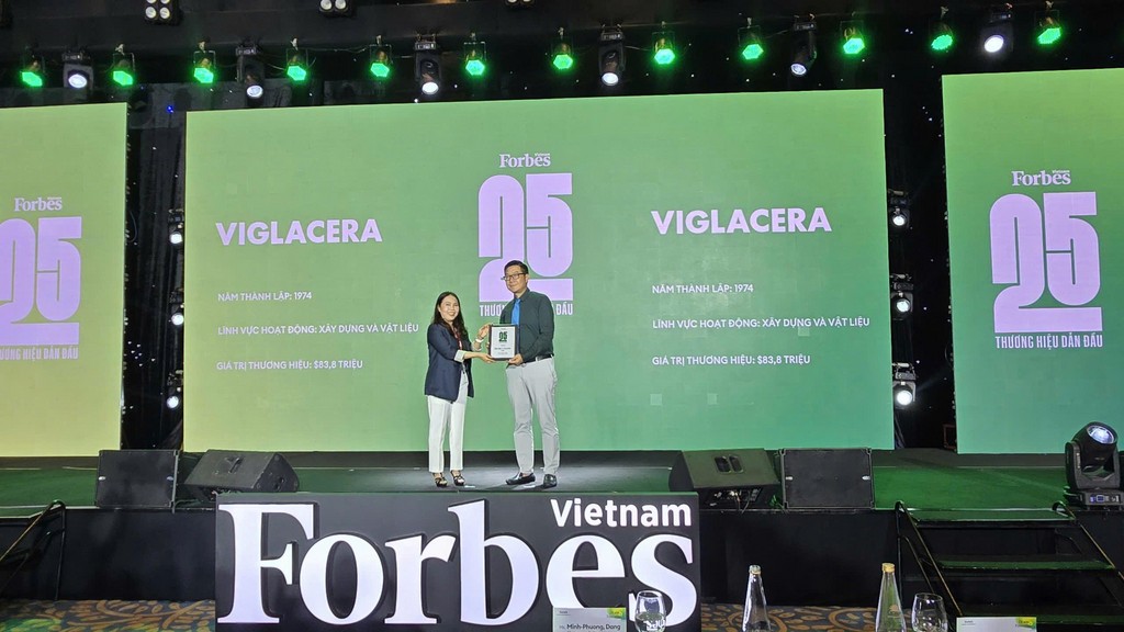 Trong những ngày cuối tháng 9/2025, liên tiếp Viglacera nhận về hai giải thưởng danh giá: Top 25 Thương hiệu Công ty niêm yết dẫn đầu năm 2025, bảng xếp hạng uy tín do Forbes công bố ngày 25/9/2025 và Top 50 Công ty kinh doanh hiệu quả nhất Việt Nam do Báo Nhịp cầu Đầu tư bình chọn và tổ chức ngày 27/9/2025.